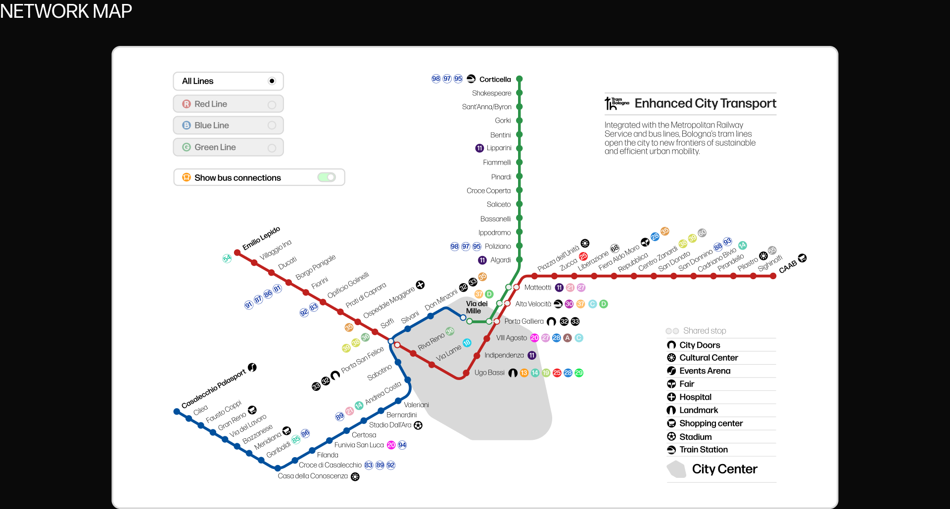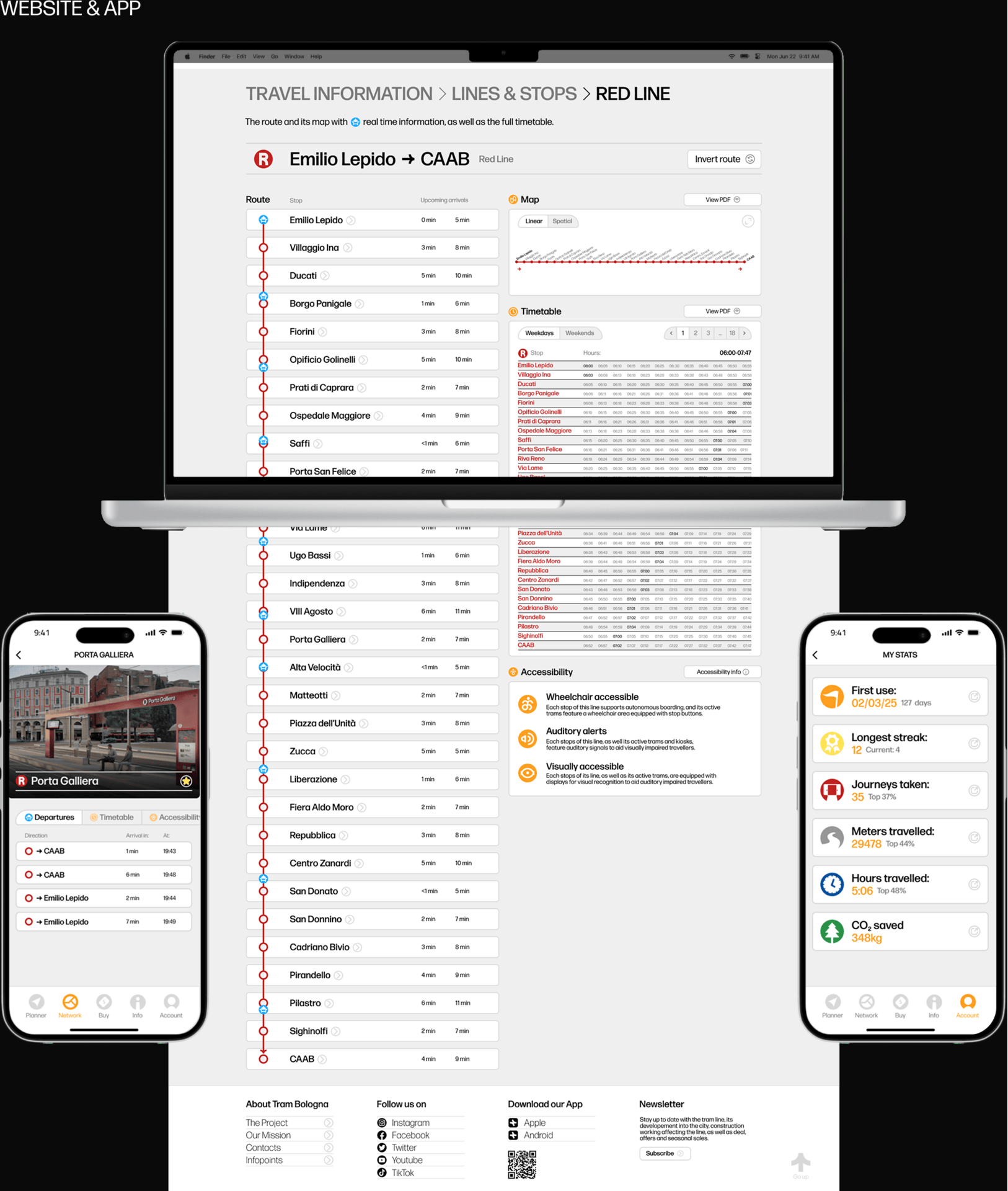 "Omnichannel Design and its applications in Service Design: a case study on the Tram Bologna project". This work explores the potential of omnichannel design applied to public transport, proposing a cohesive visual and interactive system for the new Bologna Tramway. By designing each and every touchpoint of the service (both physical and digital), the project aims to make the city's mobility environment more accessible, engaging, and user-centric. Beyond the digital content, the thesis itself has been treated as a rigorous editorial project. Through careful attention to typography, layout, and physical media, the book is designed to present the research with maximum clarity and aesthetic impact. The thesis was discussed in October 2025, and later presented to a wider audience at Università di Bologna the 5th of March 2026.